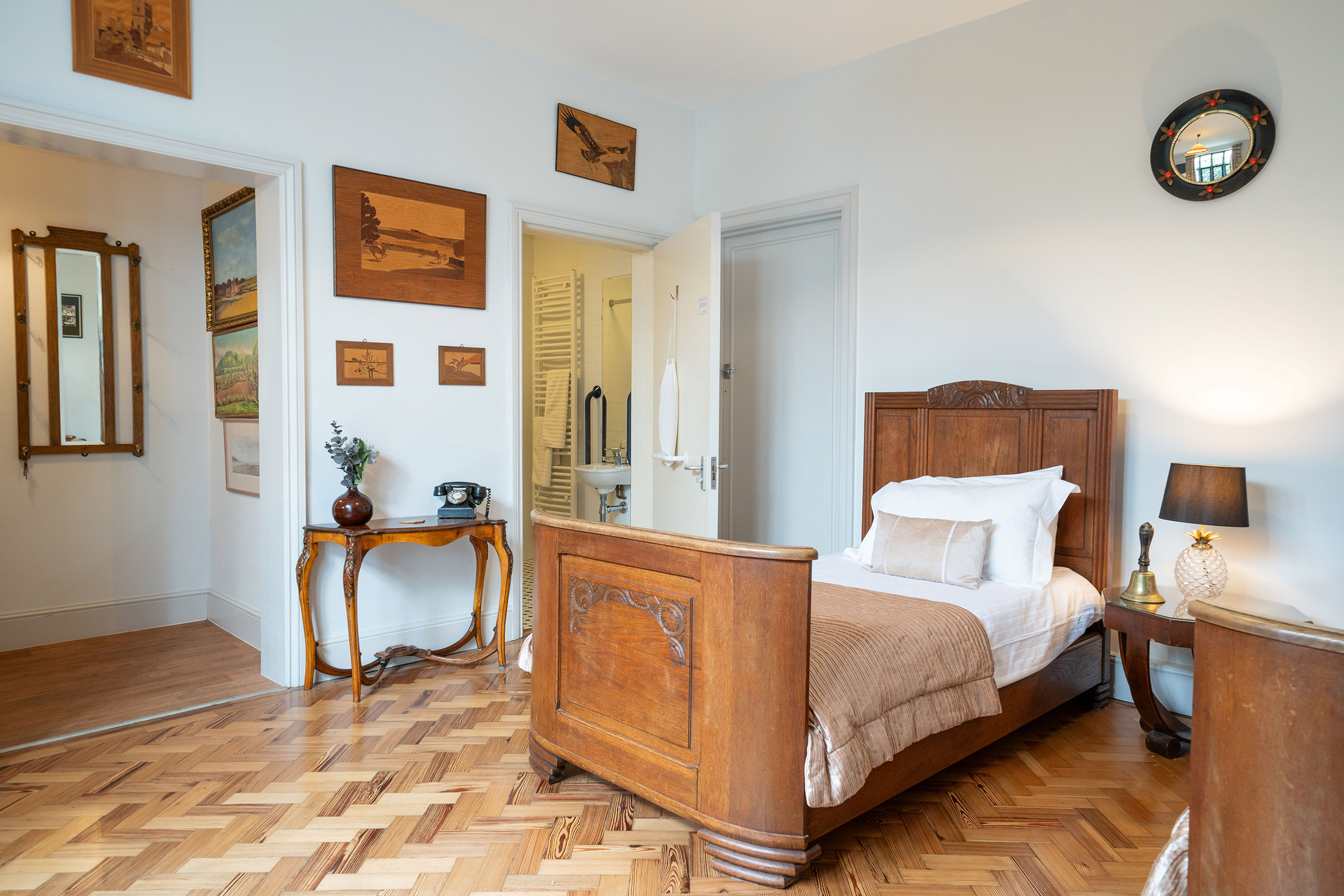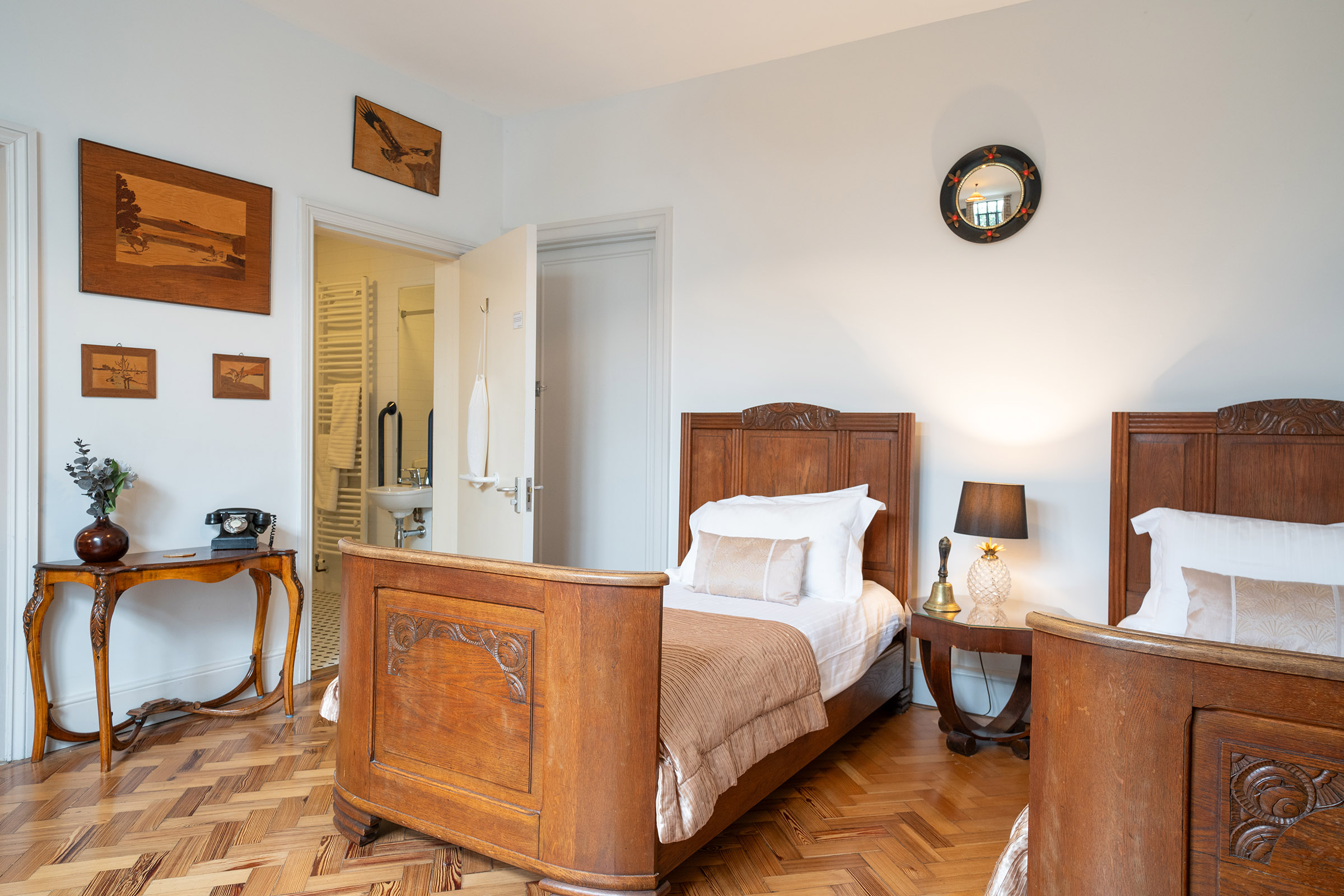 Located downstairs, The Astor Suite has been especially designed for our guests who are more mature or less mobile. It has it’s own dedicated wheelchair accessible extra entrance and there are no steps anywhere downstairs, and the wooden floors are great for wheelchair users